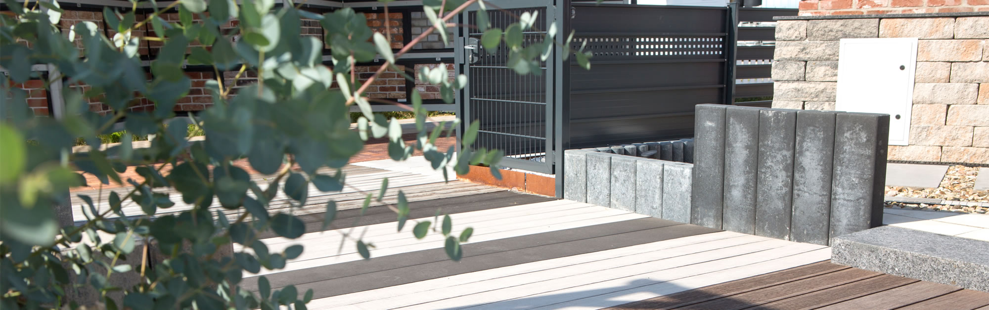 Mit unseren hochwertigen Bodenbelägen wird’s drinnen und draußen schick und behaglich. Passende Zaunelemente schaffen Privatsphäre ohne einzuengen.